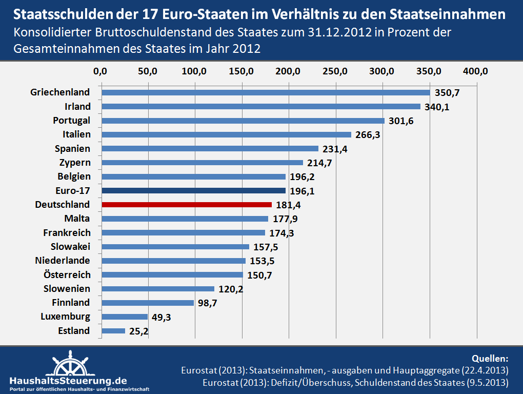 18. Mai 2013 Staatsschulden der 17 Euro-Staaten im Verhältnis zu den Staatseinnahmen